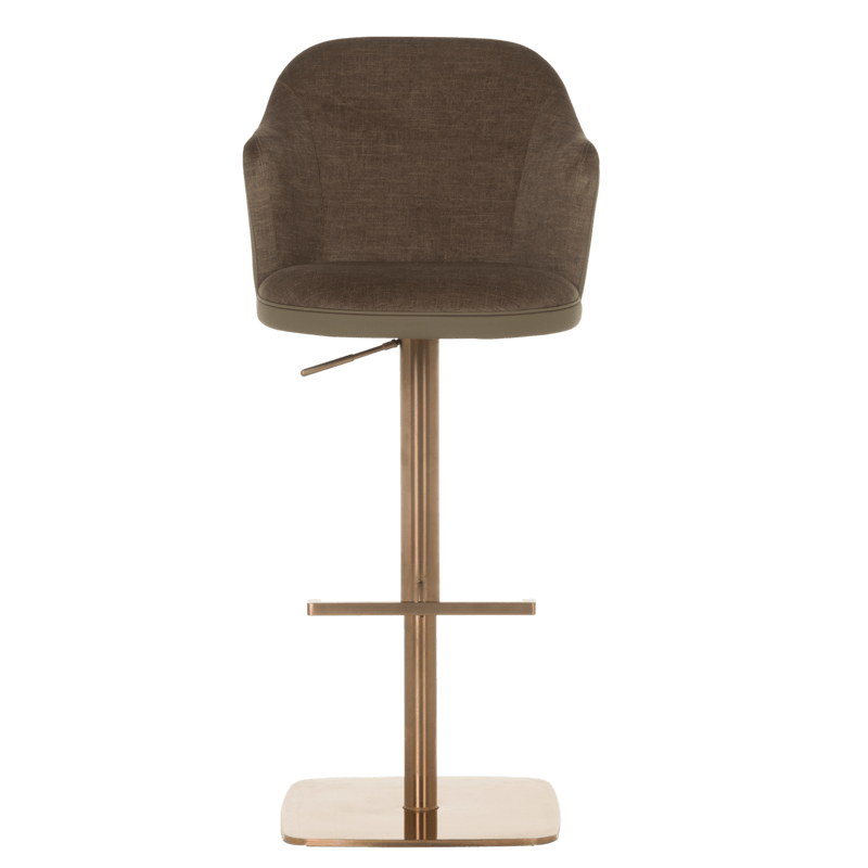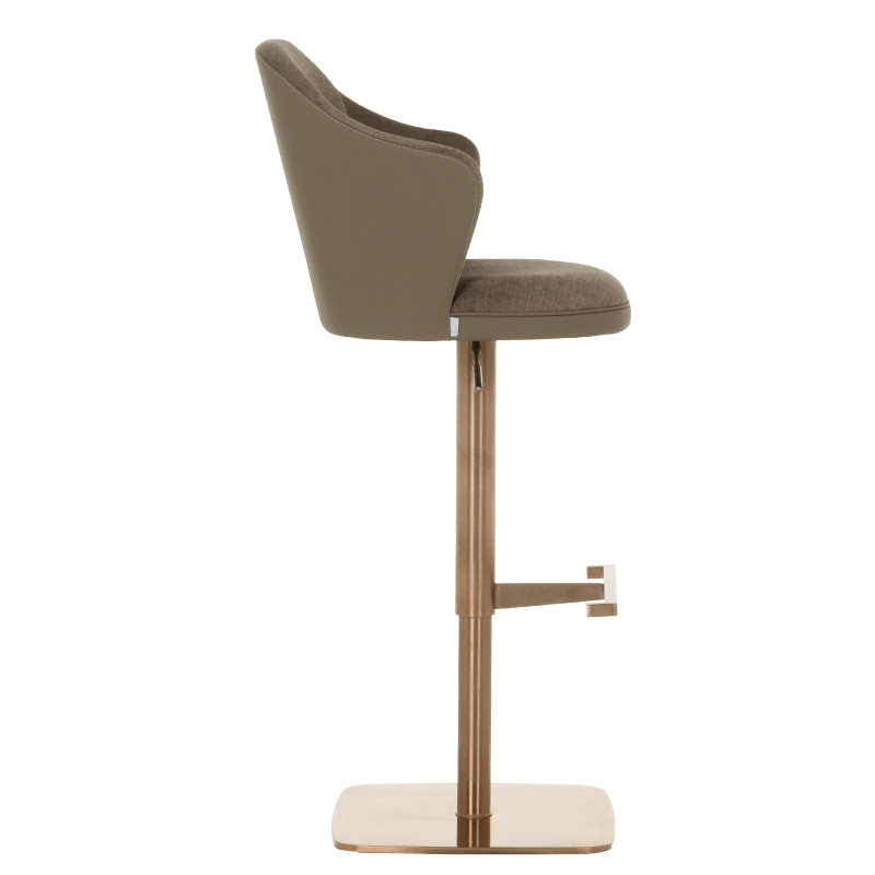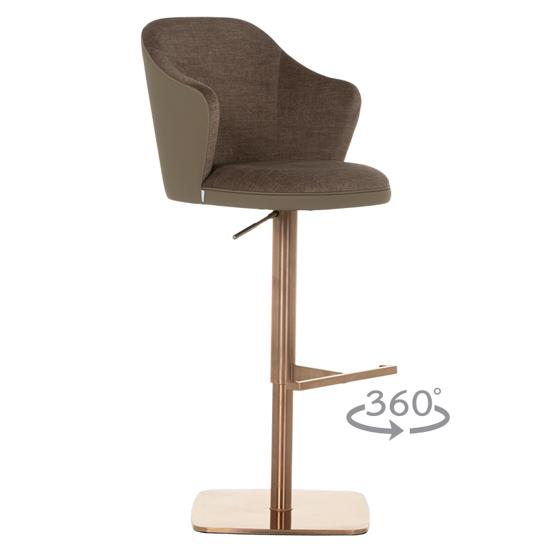 Бар столът BANKET е съвършеното въплъщение на лукс и комфорт, съчетавайки модерен дизайн с функционалност. Тапициран във висококачествена еко кожа, той предоставя несравнима мекота и елегантност, създавайки изискана атмосфера. Основата му е изработена от иноксова стомана с луксозно полирано покритие със златист финиш, което придава както забележителна издръжливост, така и изискан блясък. Подлакътниците се преливат плавно с облегалката, създавайки стилна извивка, която подчертава хармоничния и елегантен силует на стола. С въртене на 360 градуса и регулируема височина, BANKET предлага както функционалност, така и изтънчен визуален акцент за всеки интериор, където комфортът и стилът се преплитат в съвършена хармония. Пълна информация за размерите и характеристиките на модела ще намерите в таблицата в таб/поле „Техническа информация“.