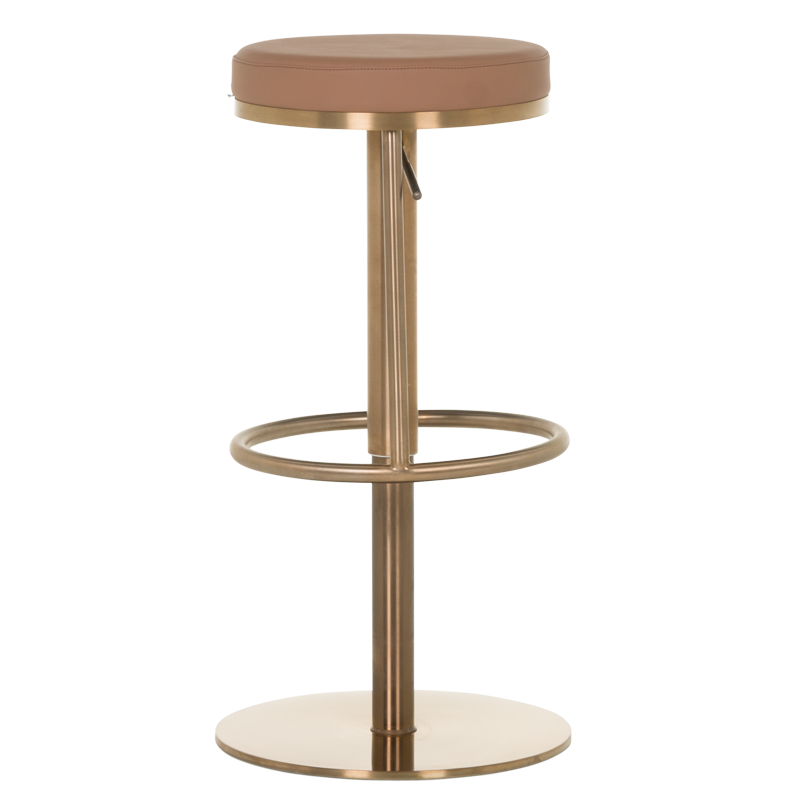 Бар столът BEZU е символ на лукс и изтънченост, съчетавайки модерен дизайн с максимален комфорт. Тапициран във висококачествена еко кожа, той предлага изключителна мекота и стил, придавайки на интериора усещане за елегантност и грижа към детайла. Основата е изработена от иноксова стомана с луксозно полирано покритие със златист финиш, което придава на стола не само издръжливост, но и бляскаво визуално присъствие. Освен впечатляващия си външен вид, BEZU предлага практичност, като в най-ниската си позиция той може да се използва като удобна табуретка. С въртене на 360 градуса и регулируема височина, този стол е перфектният избор за всеки изискан интериор, където стилът и функционалността се преплитат. Пълна информация за размерите и характеристиките на модела ще намерите в таблицата в таб/поле „Техническа информация“.