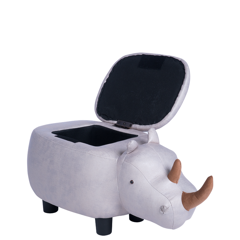 Детската табуретка с форма на носорог е идеален подарък за всяко дете, което обича животните, а защо не е и за порасналите деца, които искат да добавят нещо нестандартно и интересно в дома си. С нея ще осигурите удобно място за сядане за най-малките и допълнително място за съхранение на малки предмети, благодарение на скритата ракла във вътрешността. Пълна информация за размерите и характеристиките на модела ще намерите в таблицата в таб/поле „Техническа информация“.