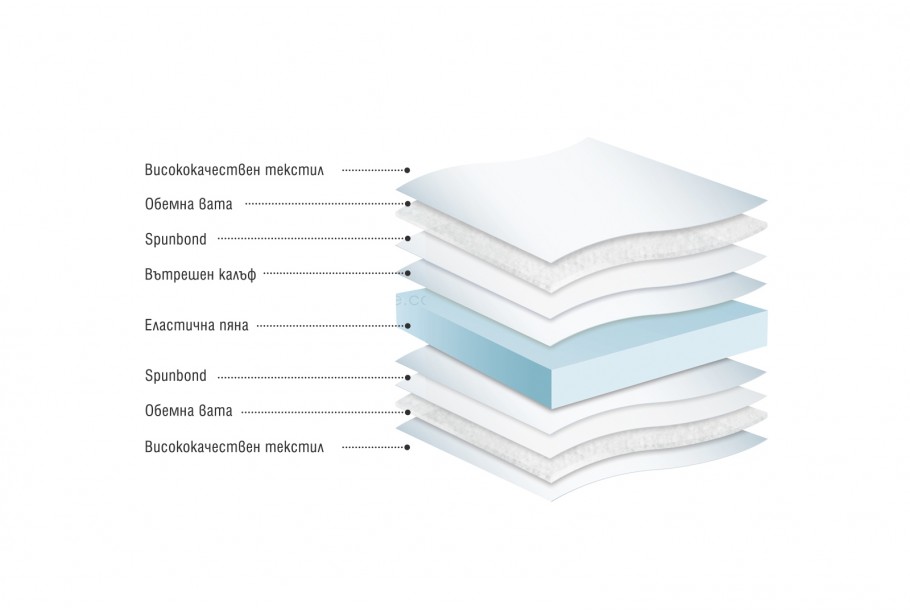 Състав на матрака: капитониран текстил, еластична пяна, цип.