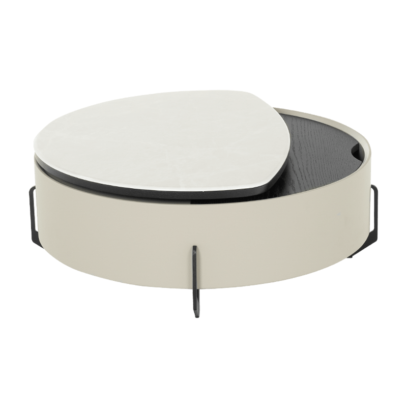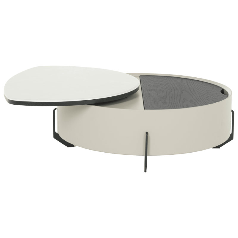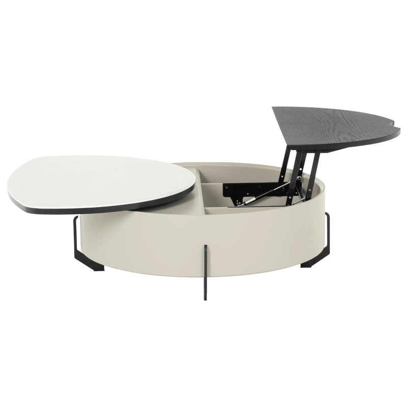 DOUGLAS е висок клас холна маса със стилен и оригинален дизайн, която съчетава красива визия и функционалност. Моделът се отличава с горен въртящ се плот и допълнителен повдигащ се черен плот, изработен от МДФ с естествен фурнир. Масата е с диаметър 90 см и височина 35 см. Пълна информация за размерите и характеристиките на модела ще намерите в таблицата в таб/поле „Техническа информация“.