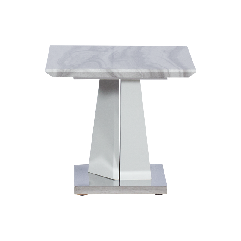 IDAHO е стилна холна маса с интересен дизайн, който създава усещане за лукс в помещението. Моделът е изработен от висококачествен МДФ материал с дебел плот, чиято горна част наподобява шарките на мрамор, а за долната част на основата е използвана неръждаема стомана. Пълна информация за размерите и характеристиките на модела ще намерите в таблицата в таб/поле „Техническа информация“.