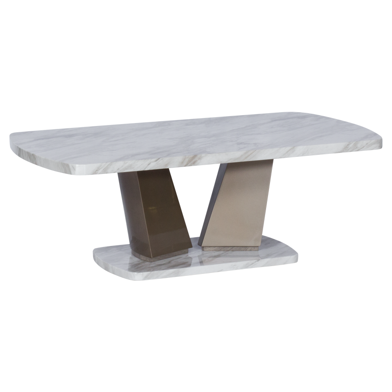 Ако търсите различна и стилна холна маса, MAINE е създадена по ваш вкус. Освен с изискана визия, моделът се отличава и с висококачествена изработка от МДФ материал. Плотът и част от основата са с мраморна шарка, което създава усещане за класа и лукс. Пълна информация за размерите и характеристиките на модела ще намерите в таблицата в таб/поле „Техническа информация“.