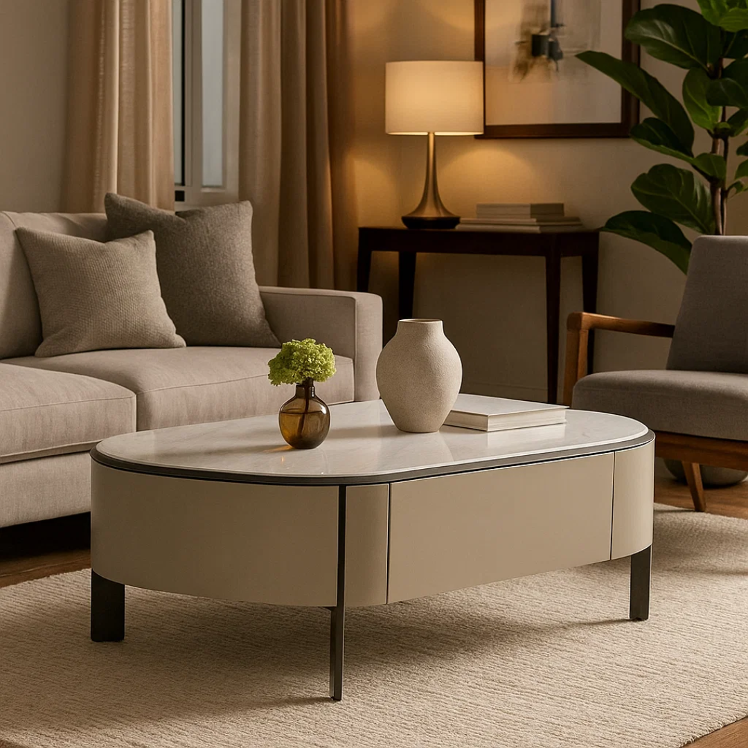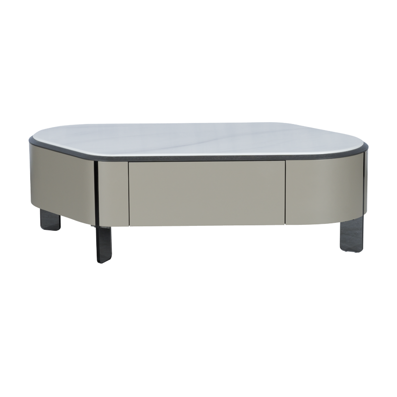 Холната маса PALMER впечатлява с изчистена елегантност и стилен дизайн, в който се преплитат модерни линии и висококачествени материали. Плотът от керамика придава усещане за лукс и изтънченост, а заоблените контури омекотяват визията и я правят подходяща за различни интериорни концепции. Основата е изработена от МДФ, краката са от праховобоядисан метал, а двете плавно отварящи се чекмеджета с корпуси от борова дървесина предлагат удобно място за съхранение на дребни вещи. Пълна информация за размерите и характеристиките на модела ще намерите в таблицата в таб/поле „Техническа информация“.