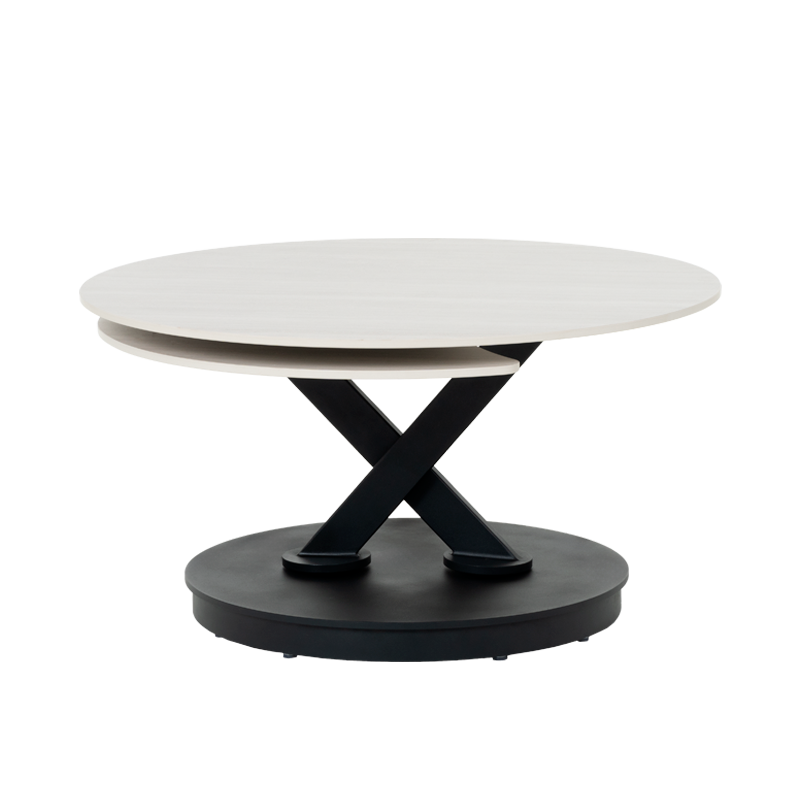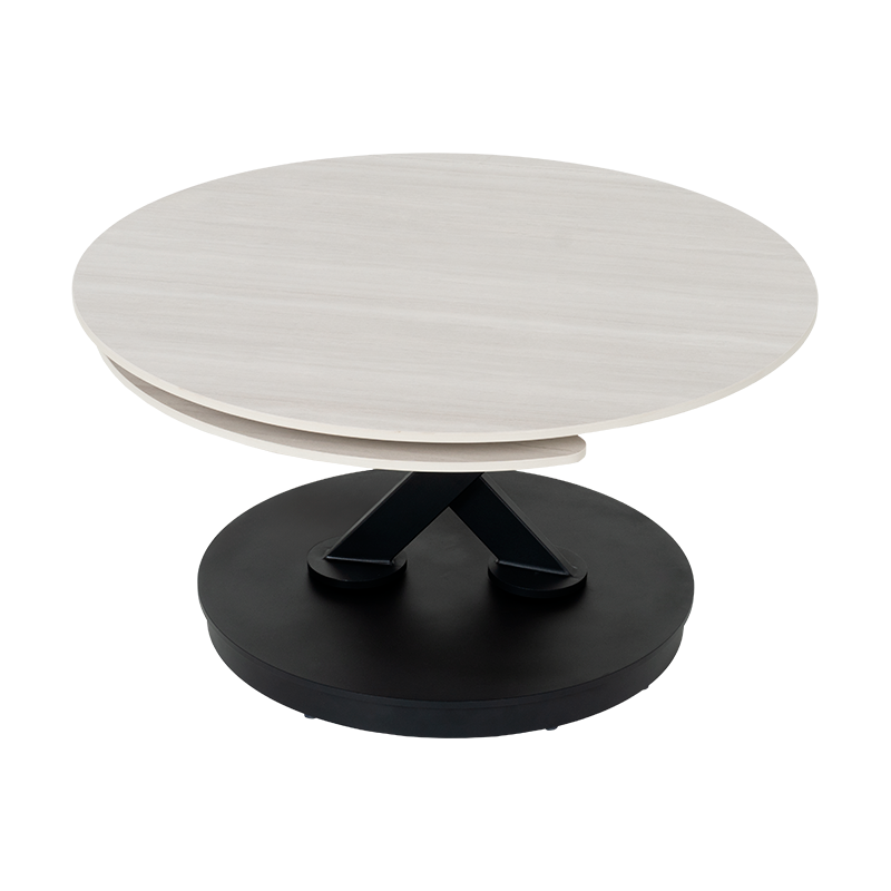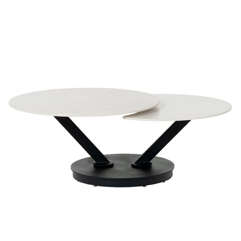 Комплект холни маси RITA впечатлява със своя изчистен дизайн и функционалност. Кръглите плотове, изработени от висококачествена керамика в елегантен кремав цвят, внасят светлина и усещане за финес в интериора. Стабилната основа от праховобоядисан метал в черен цвят осигурява надеждност и стилен контраст. Благодарение на иновативния механизъм, плотовете могат да се раздалечават и завъртат, създавайки динамична визия и практичност. RITA е перфектният избор за модерни пространства, където естетиката и удобството се съчетават в хармония. Пълна информация за размерите и характеристиките на модела ще намерите в таблицата в таб/поле „Техническа информация“.
