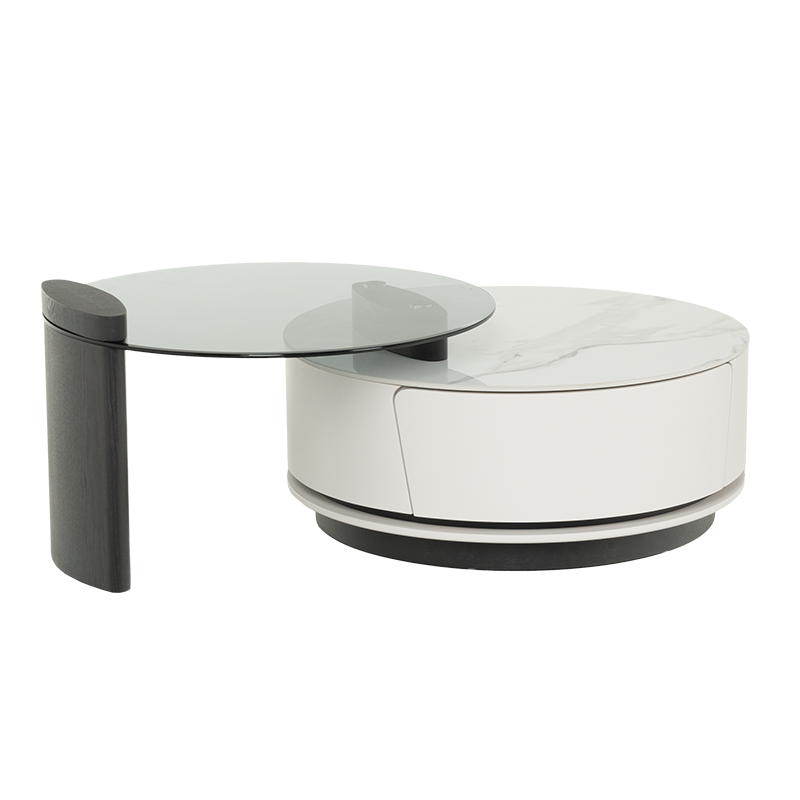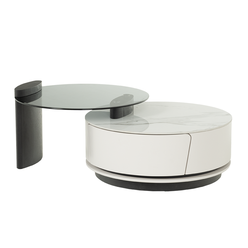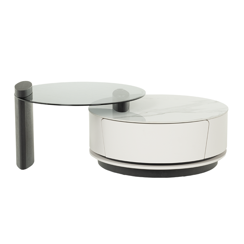 Холна маса STANLEY е перфектният акцент за модерния интериор. Изработена от висококачествени материали – закалено стъкло и керамика тя съчетава стил и функционалност. Колоната под стъкления плот изработена от МДФ с естествен фурнир добавя елегантност и уникален завършек на дизайна. Моделът разполага с две удобни чекмеджета за съхранение на различни вещи, като дистанционни, списания и други. Пълна информация за размерите и характеристиките на модела ще намерите в таблицата в таб/поле „Техническа информация“.
