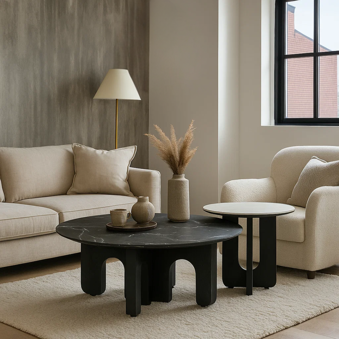 Комплект холни маси BALDER – черно и бяло съчетава елегантен облик с функционален дизайн. Плотът е изработен от MDF с устойчиво покритие, идентичен с този на холната маса BAKER – имитиращ стилна мраморна повърхност в черно и бяло. Основата също е от MDF, което придава цялостна завършеност и стабилност. Двете маси се използват както заедно, така и поотделно, а възможността за прибиране на по-малката под по-голямата спестява пространство и добавя удобство. Пълна информация за размерите и характеристиките на модела ще намерите в таблицата в таб/поле „Техническа информация“.