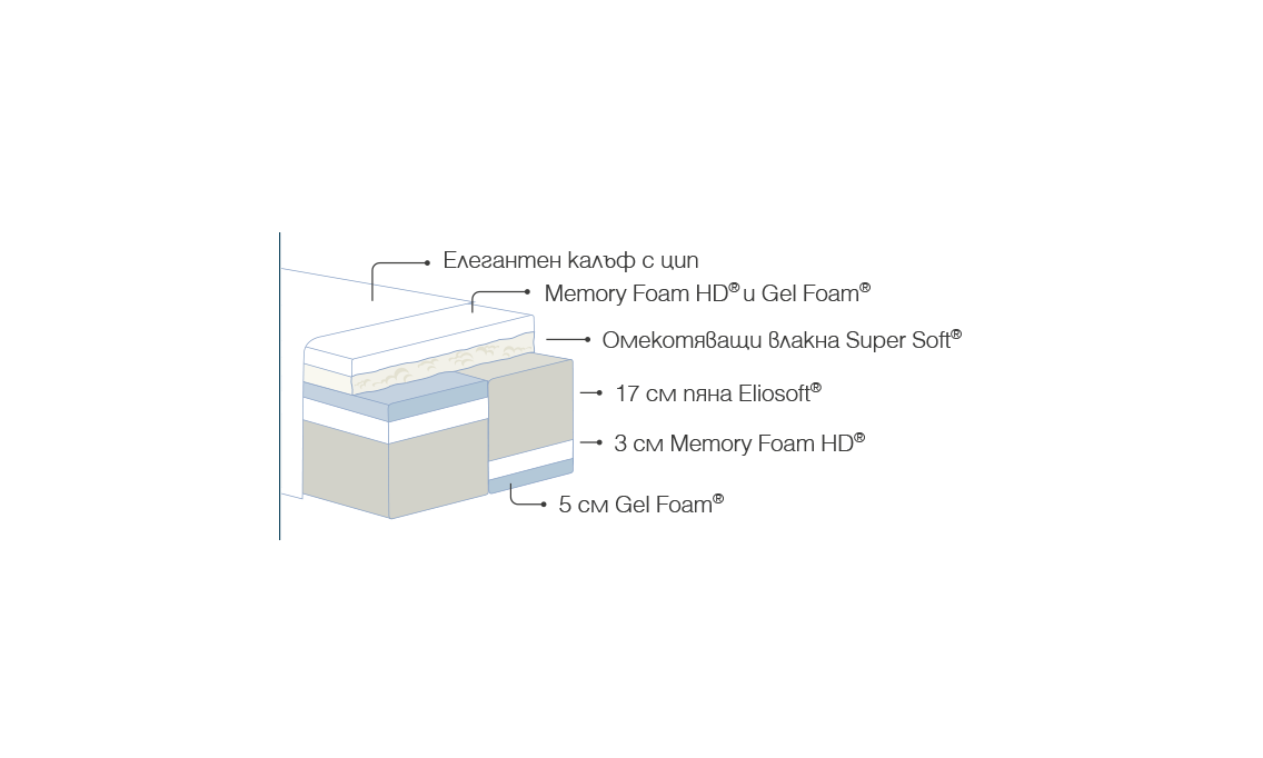 Това, което отличава Magnigel Dual, e гел пяната в калъфа и 5 см в ядрото. Този материал разпределя равномерно тежестта на тялото и гарантира постоянно суха среда. Терморегулиращите свойства, заедно с тези на мемори пяната ви позволяват да се чувствате добре, независимо от температурата в помещението или сезона.