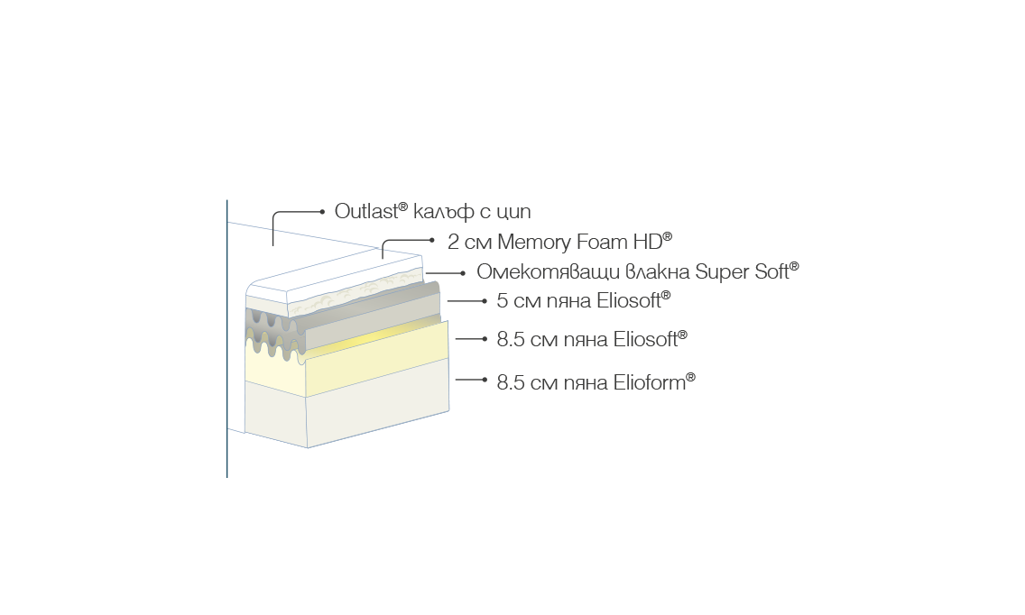 Memory Foam HD® пяната в калъфа реагира на натиск, а после на топлина – особено важно в зимните месеци, когато температурата в помещението е по-ниска. При матраците на Magniflex с Memory Foam HD® ще усетите отпускане веднага след като легнете. Този материал разпределя равномерно тежестта на тялото, което облекчава раменете, кръста и краката Ви.