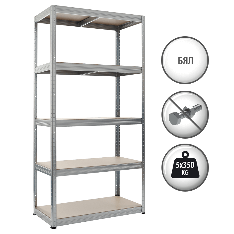 Метален стелаж STAR 180х90х35 см, до 350 кг на рафт – бял
