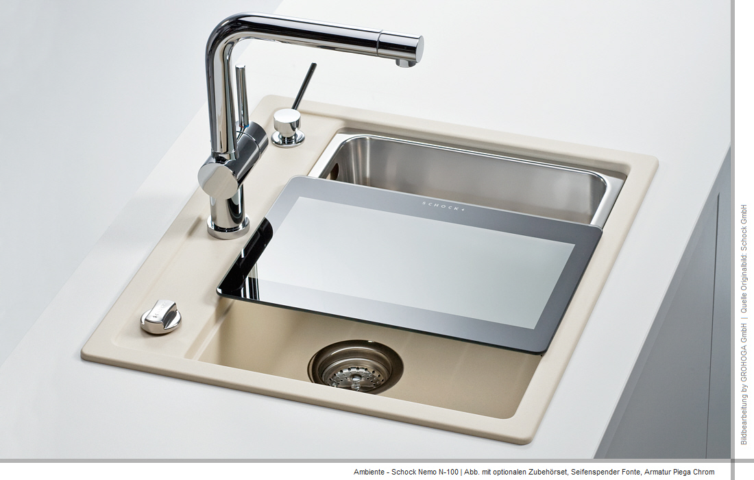 Мивката е окомплектована с: автоматичен сифон с преливник(възможност за включване на миялна/пералня), щипки за монтаж