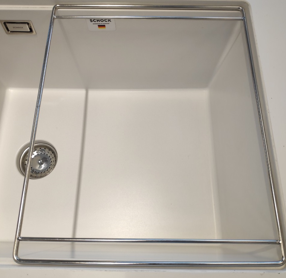 Мивката е окомплектована с: автоматичен сифон с преливник(възможност за включване на миялна/пералня), щипки за монтаж, дървена дъска SCHOCK 629137, метална релса подходяща за гевгир: SCHOCK 629063