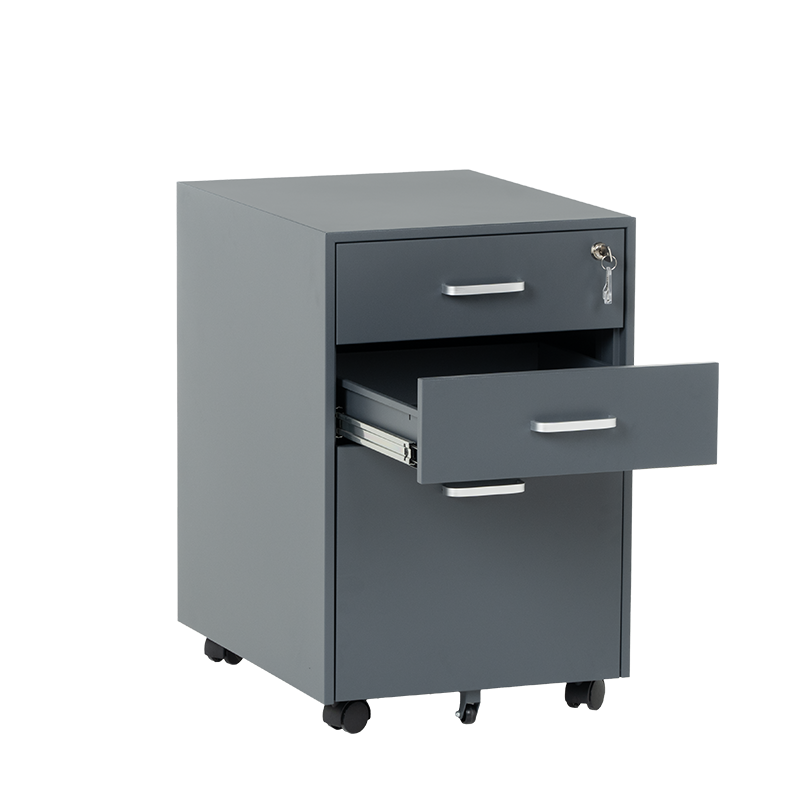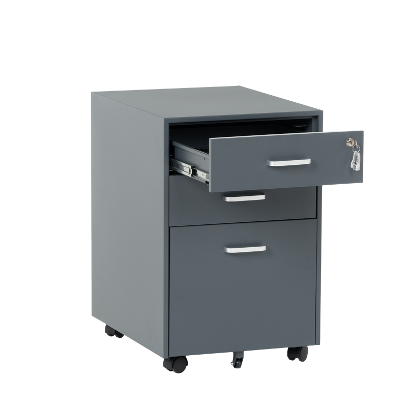 Офис контейнерът Carmen CR-1802 J SAND е метален шкаф тип кардекс с 3 чекмеджета с удобни дръжки и централно заключване. В основата на шкафа има колела за лесно придвижване при нужда. Контейнерът пристига сглобен, без необходимост от монтаж. Моделът е със система против накланяне, поради която чекмеджетата се отварят едно по едно (за да отворите едно, другите 2 трябва да са затворени).Пълна информация за размерите и характеристиките на модела ще намерите в таблицата в таб/поле „Техническа информация“.