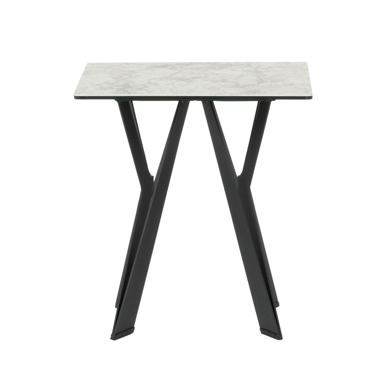 Помощната маса GUBIN впечатлява със съвременния си дизайн и практични размери. Плотът с дебелина 12 мм комбинира 8 мм закалено стъкло с 4 мм керамичен завършек, създавайки здрава и стилна повърхност, която е идеална за ежедневна употреба. Основата от праховобоядисан метал се откроява със своята геометрична структура и съвременен черен матов цвят, добавяйки изтънчен акцент към всяко пространство. С компактните си размери от 50 см дължина, 50 см ширина и 55 см височина, GUBIN е универсално решение, което носи удобство и елегантност във всяка стая. Пълна информация за размерите и характеристиките на модела ще намерите в таблицата в таб/поле „Техническа информация“.