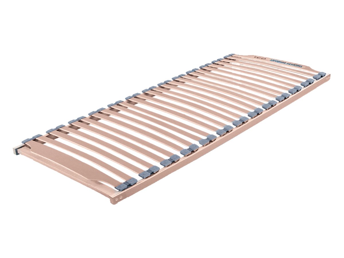 Изключително модерна и комфортна система, съставена от ламели с ширина 38 mm разположени в групи по два. Всяка двойка е фиксирана за рамката от широколистен дървен материал посредством специални PVC държачи. Гарантира максимална гъвкавост на двойните ламели и пълна ефективност на функционалните характеристики на използвания матрак.