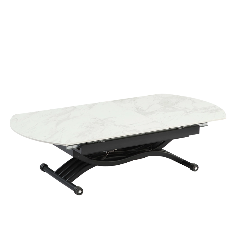 Масата LESKO е перфектният избор за тези, които търсят съчетание между функционалност и елегантен дизайн. Тя разполага с иновативен повдигащ механизъм, който позволява лесно регулиране на височината от 38 до 76 см, превръщайки я от холна в трапезна маса с едно движение. Разтегателният механизъм с модерна слайд система разширява плота от 120 до 150 см, като запазва широчината от 80 см. Керамичният плот осигурява изключителна здравина и стабилност, а съвременният му вид добавя усещане за лукс и уникален стил към вашия интериор. С LESKO лесно преминавате от сутрешното кафе към обяд или вечеря с приятели и семейството – всичко в един изискан и практичен продукт. Пълна информация за размерите и характеристиките на модела ще намерите в таблицата в таб/поле „Техническа информация“.