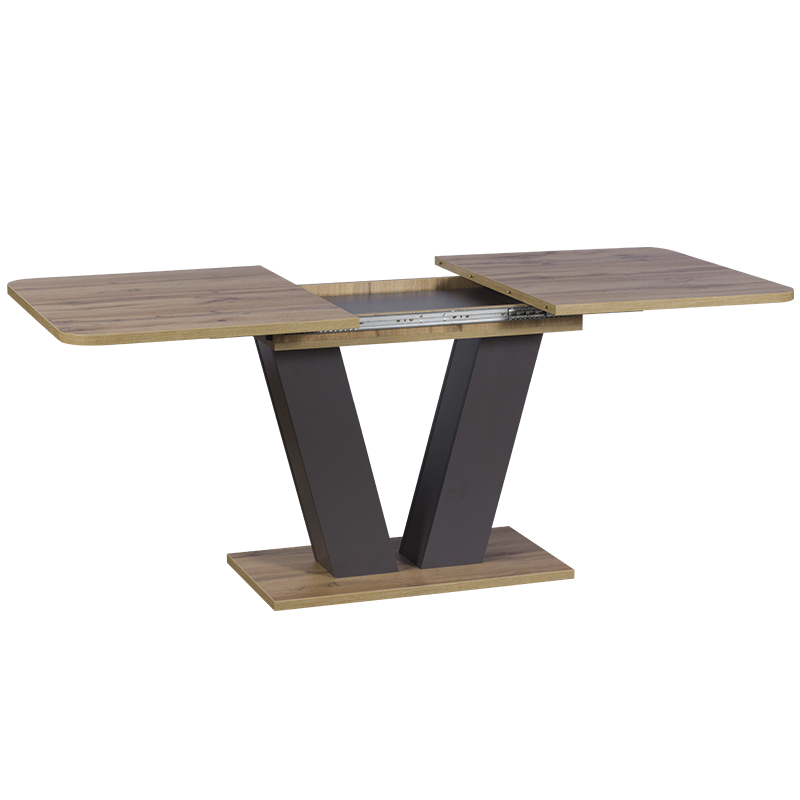 Разтегателната трапезна маса ALARA е модел с модерен дизайн, който ще допълни идеално всяка съвременна кухня. Масата е със стандартна височина от 75 см. и нестандартна V-образна основа. Плотът е с дебелина 25 мм и размери 136 см. х 80 см., като с помощта на допълнителна плоскост може да разтегнете масата, при което дължината на плота се увеличава на 176 см. Пълна информация за размерите и характеристиките на модела ще намерите в таблицата в таб/поле „Техническа информация“.