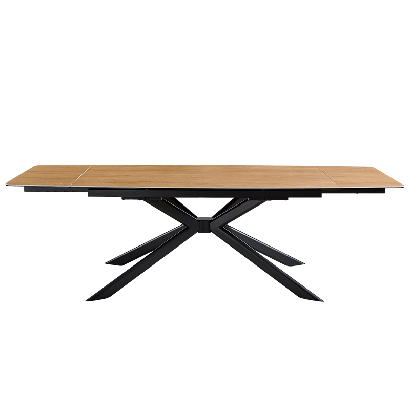 Разтегателна трапезна маса ANACO впечатлява с естествената си естетика и изчистен дизайн, който допълва всяка съвременна трапезария. Плотът комбинира закалено стъкло и керамика с дървесен цвят, създавайки хармония между издръжливост и стил. Здравата основа от праховобоядисан метал осигурява стабилност и надеждност. Със стандартна дължина от 160 см, която може да се разшири до впечатляващите 240 см благодарение на практичен разтегателен механизъм, масата предоставя достатъчно пространство за специални поводи и ежедневни събирания. ANACO е перфектният избор за тези, които търсят комбинация от функционалност и естествена красота. Пълна информация за размерите и характеристиките на модела ще намерите в таблицата в таб/поле „Техническа информация“.