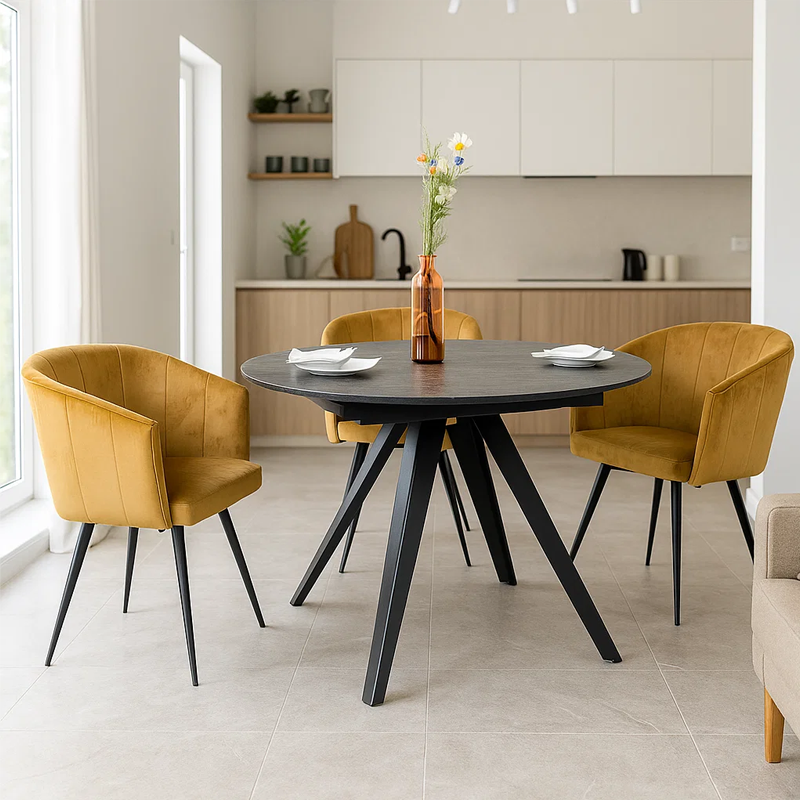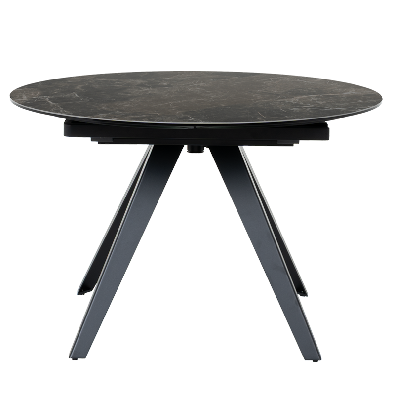 Трапезната маса BOLKOW впечатлява с изискания си кафяв плот, комбиниращ закалено стъкло и керамика с мраморен ефект, който придава усещане за лукс и елегантност. Здравата конструкция и стабилната основа с геометричен дизайн създават модерен акцент във всяка трапезария. Моделът е снабден с два допълнителни плота, всеки по 30 см, които се разтягат чрез иновативен механизъм на завъртане на основния плот. Тази функционалност позволява плавно и лесно разтягане от 120 см до 180 см, осигурявайки повече пространство и гъвкавост при нужда. BOLKOW съчетава елегантен дизайн и практичност, което я прави идеалният избор за съвременния дом. Пълна информация за размерите и характеристиките на модела ще намерите в таблицата в таб/поле „Техническа информация“.