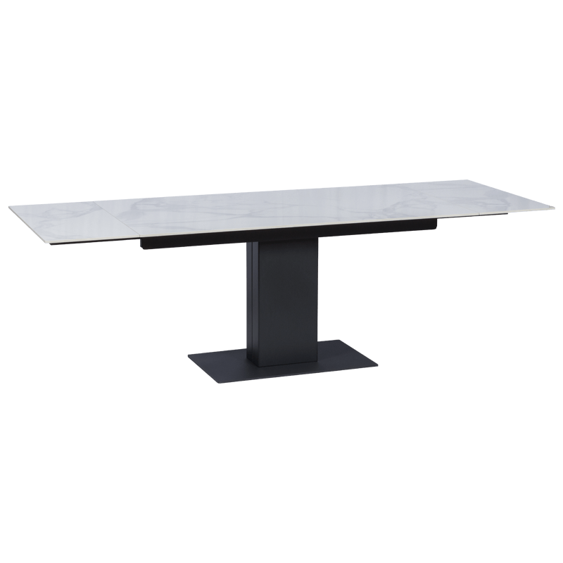 JURATA e масивна и луксозна трапезна маса, чиято основа е изработена от праховобоядисан метал, а плотът от керамика. Моделът притежава стабилна конструкция и функция за разтягане. Със своя семпъл и модерен дизайн, тя лесно ще се съчетае с всеки интериорен стил. Пълна информация за размерите и характеристиките на модела ще намерите в таблицата в таб/поле „Техническа информация“.