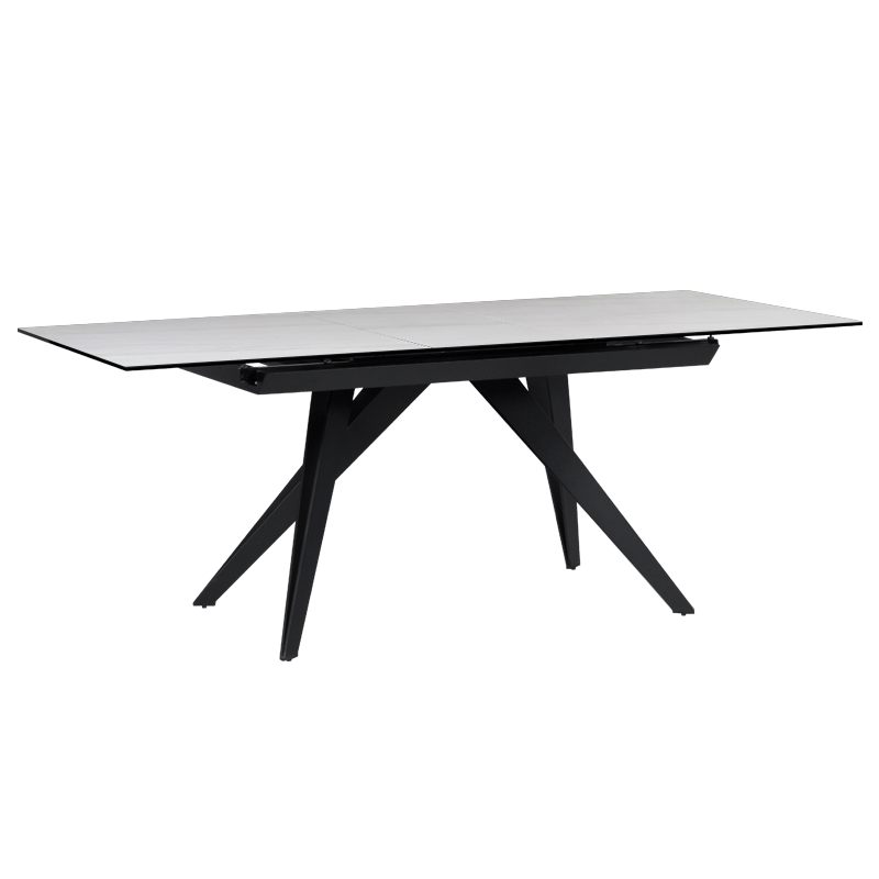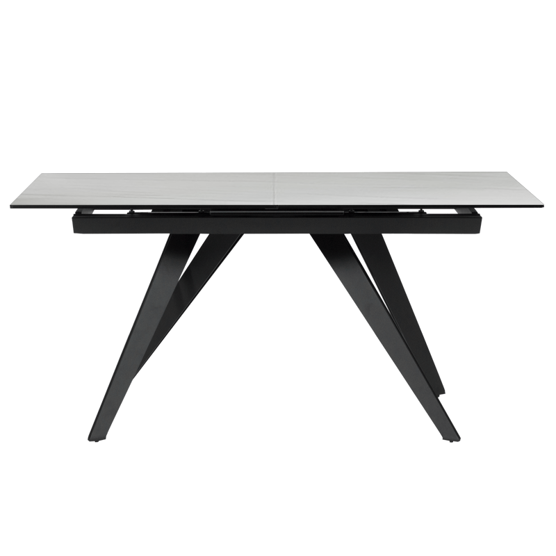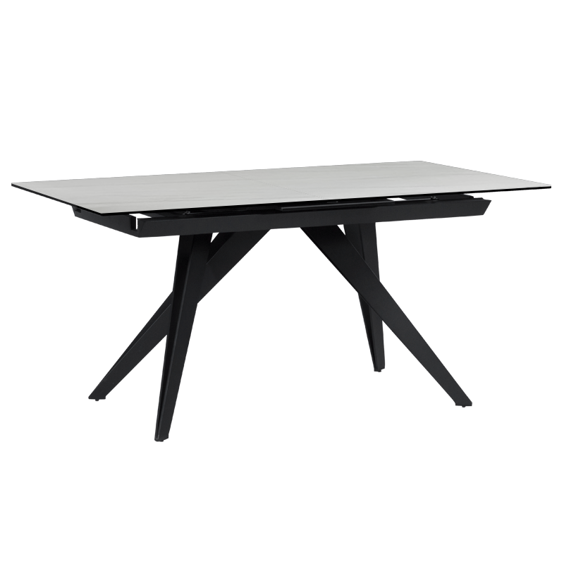 KONIN е трапезна маса с разтегална функция, която ще се превърне в стилен акцент във всеки дом. Плотът е изработен от керамика и закалено стъкло, а стабилната основа от праховобоядисан метал. Пълна информация за размерите и характеристиките на модела ще намерите в таблицата в таб/поле „Техническа информация“.