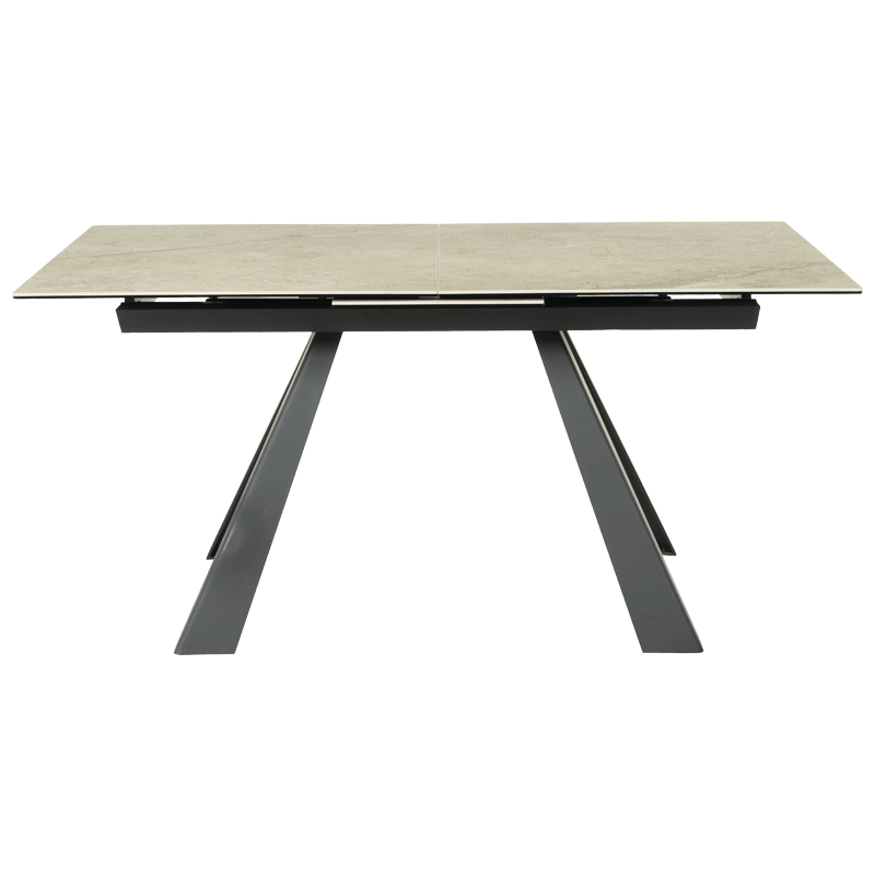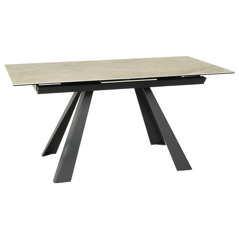 Разтегателна трапезна маса LASK привлича с уникалния си дизайн и висококачествена изработка. Плотът, изработен от керамика и закалено стъкло, съчетава стил и устойчивост, предоставяйки елегантно решение за всяка трапезария. С дължина от 160 см, която може да бъде увеличена до 200 см благодарение на иновативния механизъм за разтягане, масата лесно се адаптира към вашите нужди и осигурява повече пространство за вашите гости. Здравата метална основа с праховобоядисан завършек допълва модерната визия и гарантира стабилност. С ширина 90 см, разтегателната трапезна маса LASK е идеалното съчетание от функционалност и изтънченост, създавайки уют и стил в дома ви. Пълна информация за размерите и характеристиките на модела ще намерите в таблицата в таб/поле „Техническа информация“.