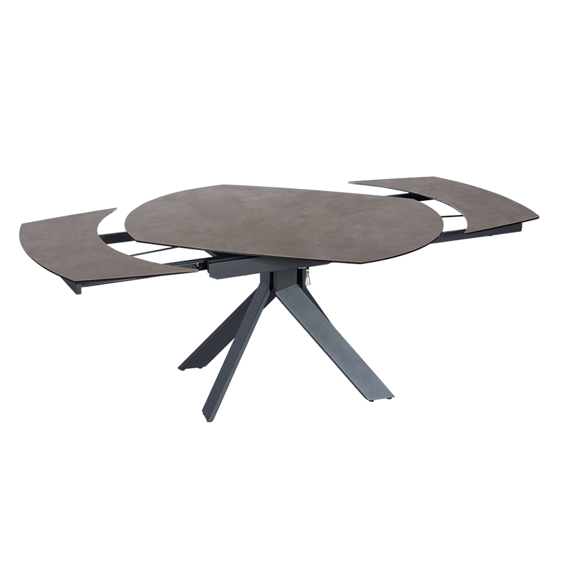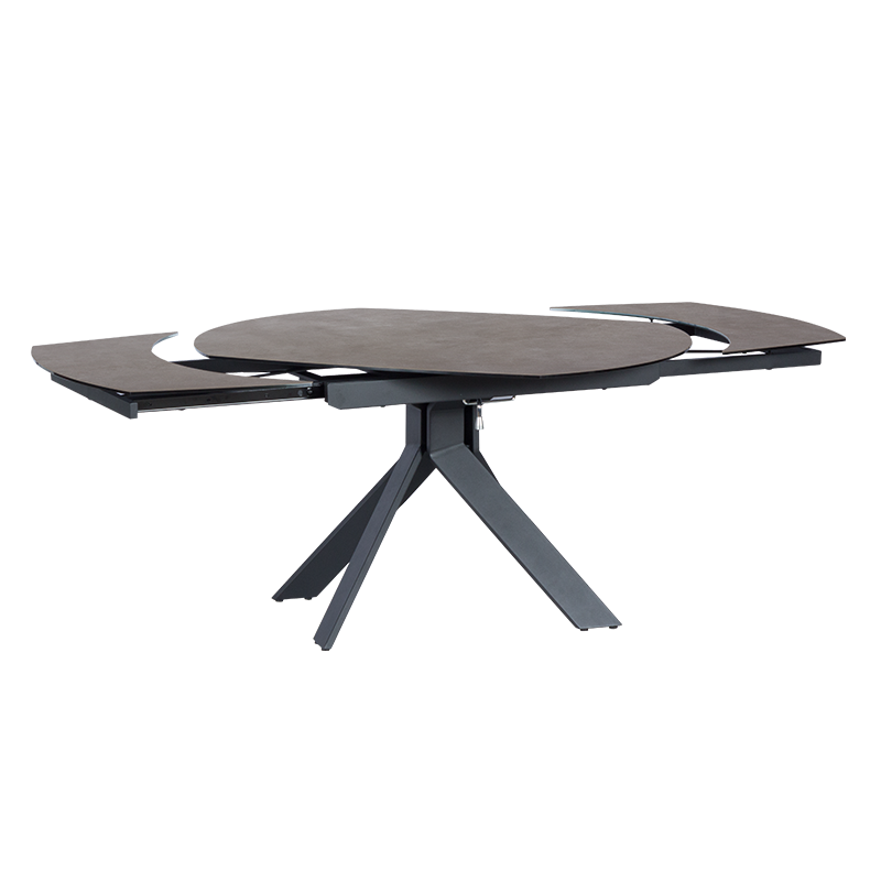MILAZZO е разтегателна трапезна маса с модерна визия и нестандартна, но стабилна основа от праховобоядисан метал. Керамичният плот внася доза лукс във всеки интериор, а функцията за разтягане осигурява достатъчно място за посрещане на вашите гости – цели 190 см. Пълна информация за размерите и характеристиките на модела ще намерите в таблицата в таб/поле „Техническа информация“.