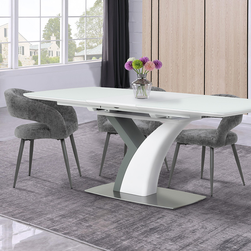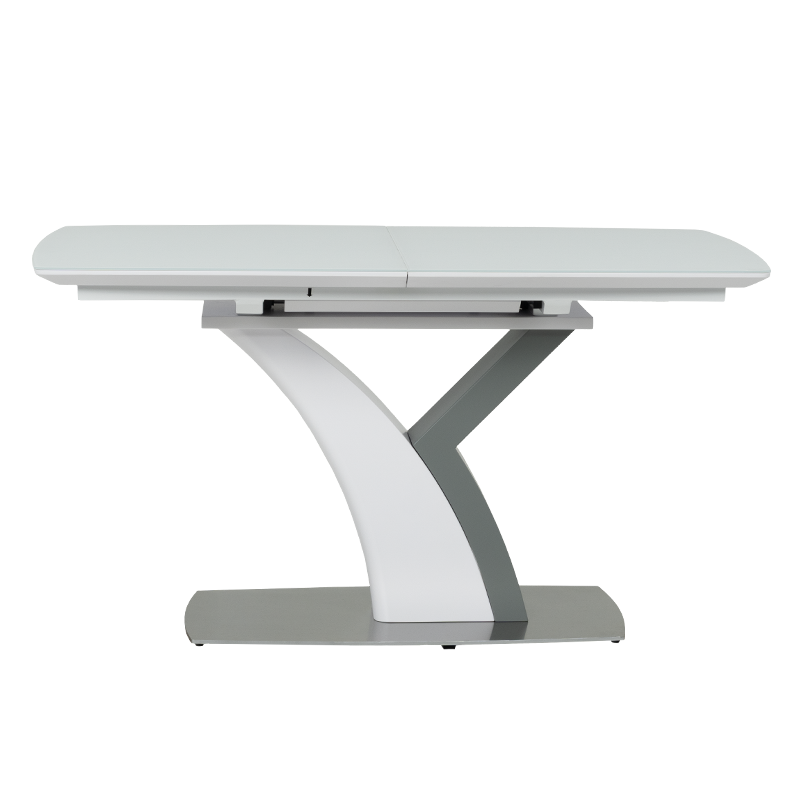 Разтегателната трапезна маса OMIS впечатлява със своя модерен дизайн и функционалност. Стабилната основа от неръждаема стомана осигурява здравина, а плотът с дебелина 40 мм съчетава висококачествен МДФ и матово закалено стъкло. Благодарение на слайд механизма, масата лесно се разтяга от 140 см до 185 см, предоставяйки повече пространство за вашите гости. Средният плот е снабден с релса и практична кожена дръжка, което прави разтягането бързо и удобно. OMIS е перфектният избор за съвременния дом, съчетавайки стил, качество и удобство. Пълна информация за размерите и характеристиките на модела ще намерите в таблицата в таб/поле „Техническа информация“.