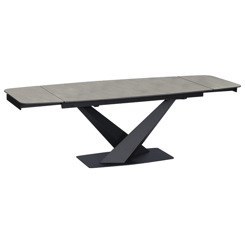 PLOCK е модерна и стилна трапезна маса с плот от керамика и стъкло и функция за разтягане. Дизайнът на основата е разчупен и оригинален, а праховобоядисаният метал, от който е изработена, гарантира здравина и стабилност. Пълна информация за размерите и характеристиките на модела ще намерите в таблицата в таб/поле „Техническа информация“.