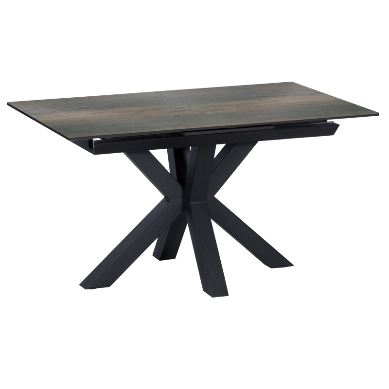 Разтегателна трапезна маса STARGARD X може да преобрази всеки дом със своя стил. Тя има модерна визия с масивни и нестандартни крака. Разполага с правоъгълен керамичен плот, комбиниран със закалено стъкло, който има функция за разтягане. Благодарение на това масата достига от 140 см до 180 см дължина. Пълна информация за размерите и характеристиките на модела ще намерите в таблицата в таб/поле „Техническа информация“.