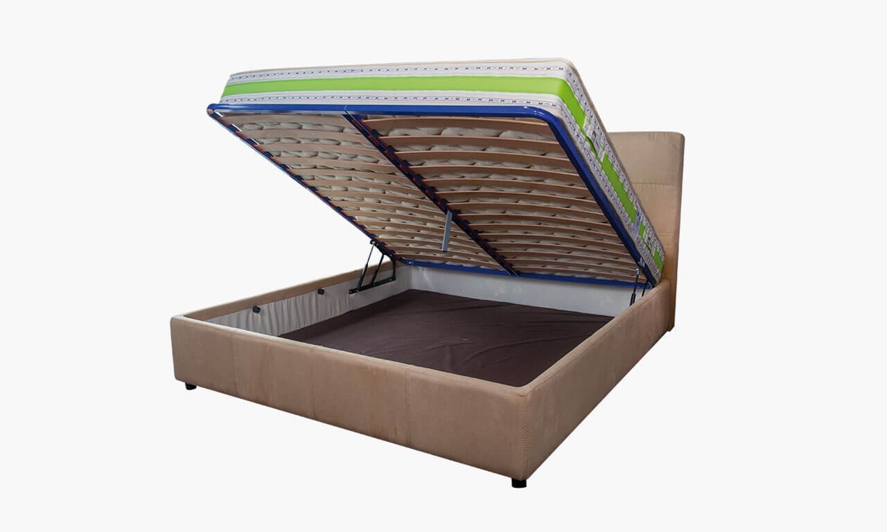• Повдигащата се подматрачна ламелна рамка увеличава комфорта на поставения върху него матрак, като едновременно с това осигурява практично пространство за съхранение.