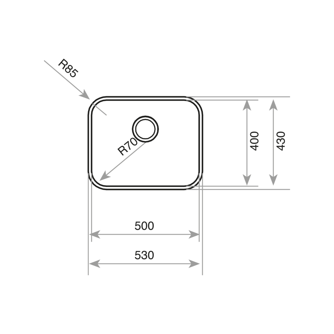 Подплотова иноксова мивка за шкаф със светъл отвор 60 см