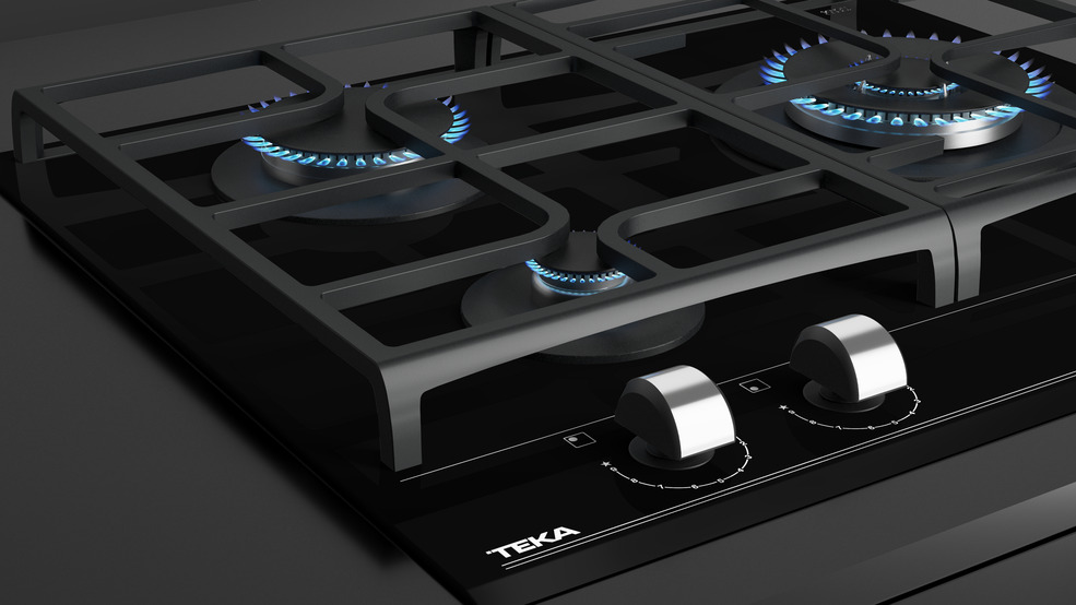 Дизайнът на чугунените решетки позволява лесно приплъзване на готварския съд от една горелка към друга и осигурява пълна свобода за удобно използване на цялата готварска площ.