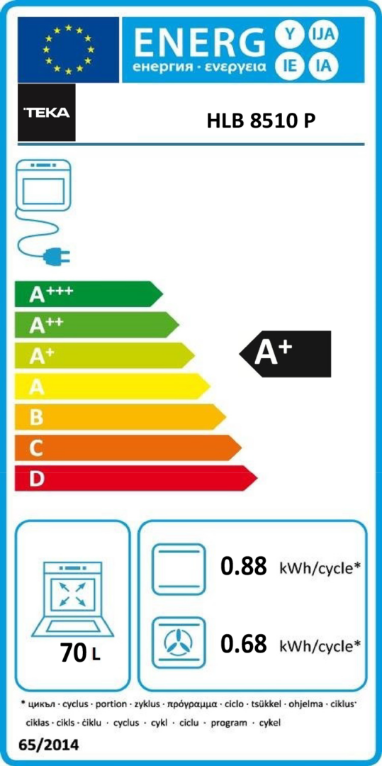 - Енергийна консумация за един цикъл с принудителна циркулация на въздуха (kWh): 0,68
