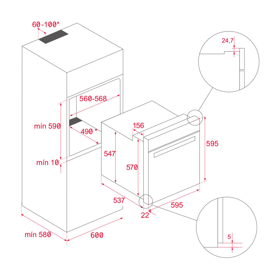 - Енергийна консумация за един цикъл с принудителна циркулация на въздуха (kWh): 0,68