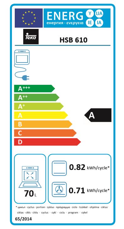 - Енергийна консумация за един цикъл с принудителна циркулация на въздуха (kWh): 0,71
