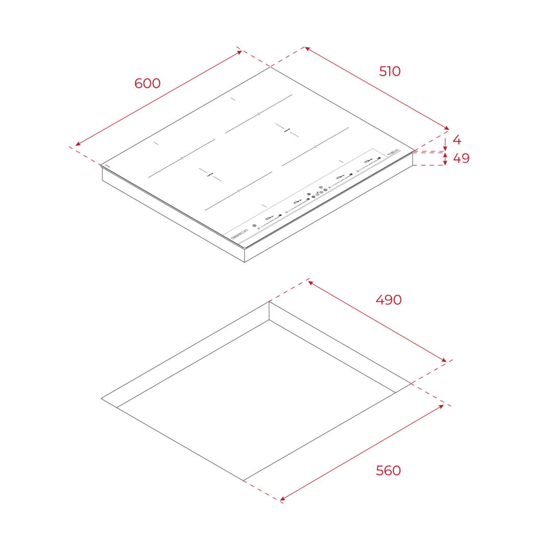 - Възможност за ползване на 4, 2 или 1 готварски зони: 2 FLEX зони 235/377 мм (обединяващи 4 зони 235 х 188,5 мм) или 1 зона с площта на целия плот (470 х 377 мм)