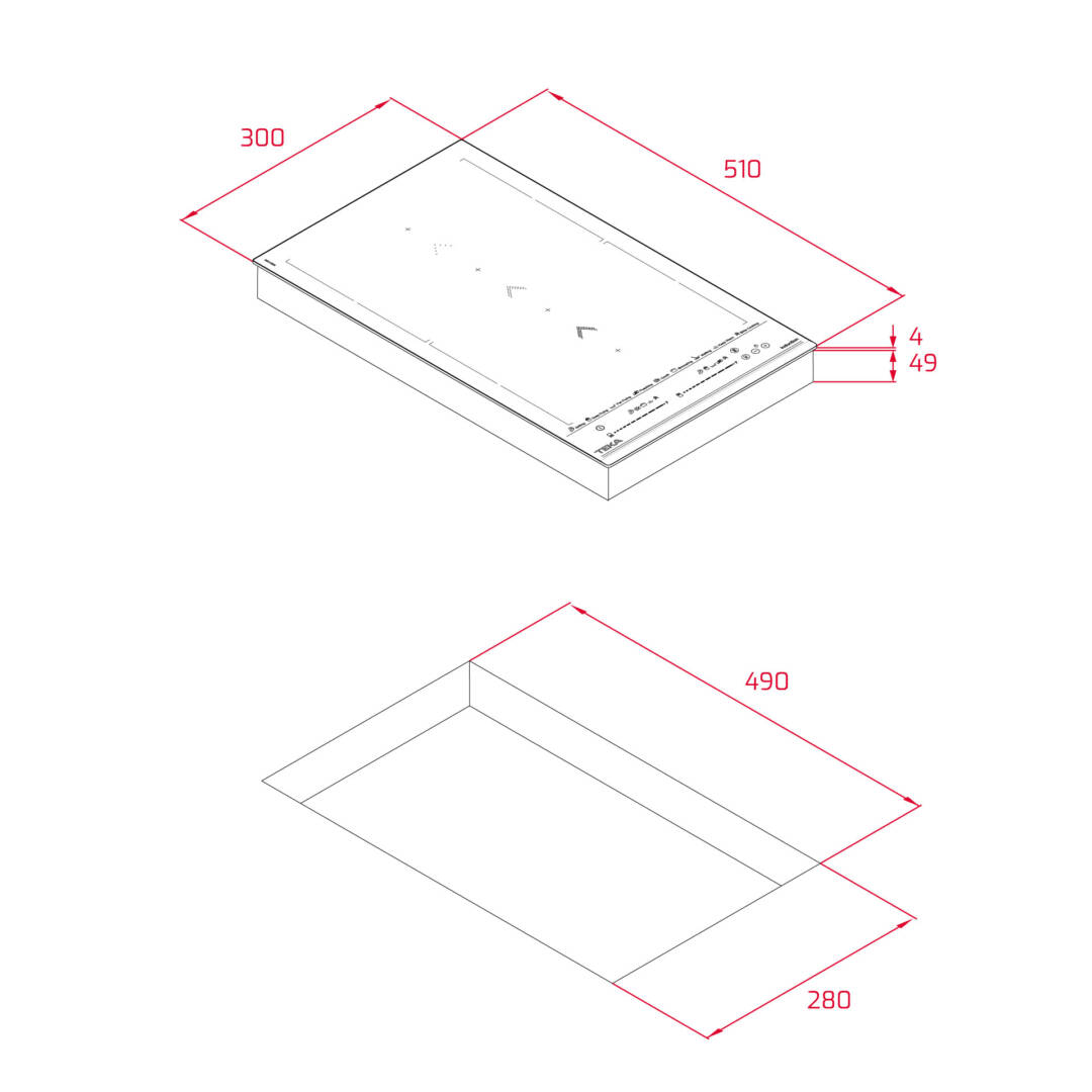 1 / 2 готварски зони: 1 FLEX зона 255/400 мм (обединяваща 2 зони 255 х 200 мм)