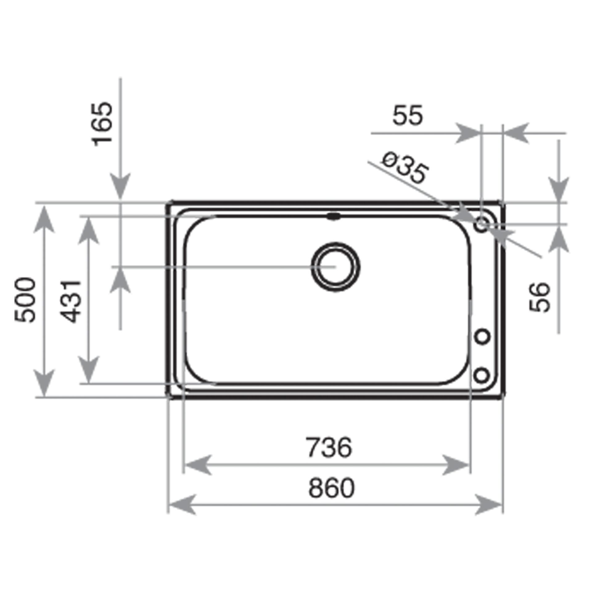 Иноксова мивка за вграждане, гладка, за шкаф със светъл отвор 90 см