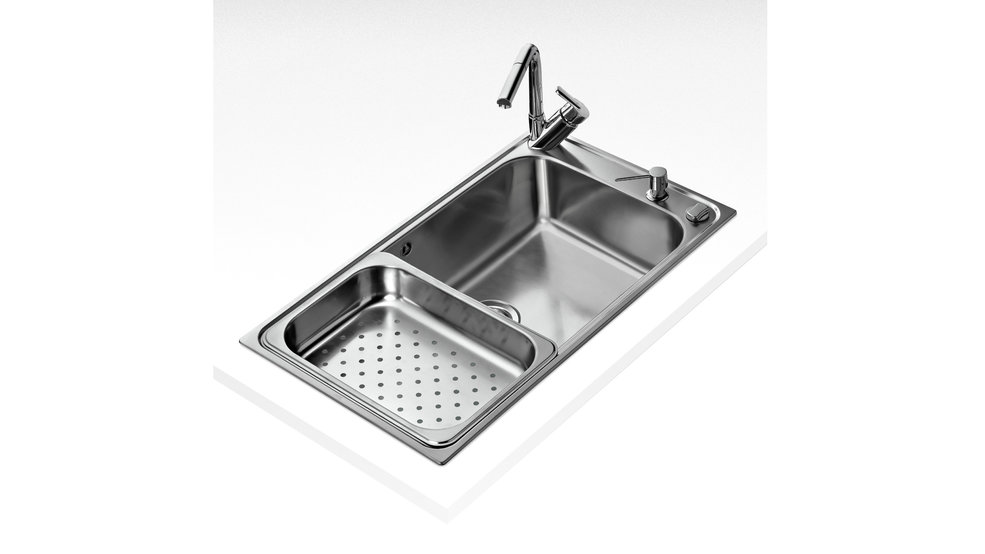- Включени в комплекта аксесоари: вграден дозатор за сапун, иноксова перфорирана тавичка, дървена дъска за рязане