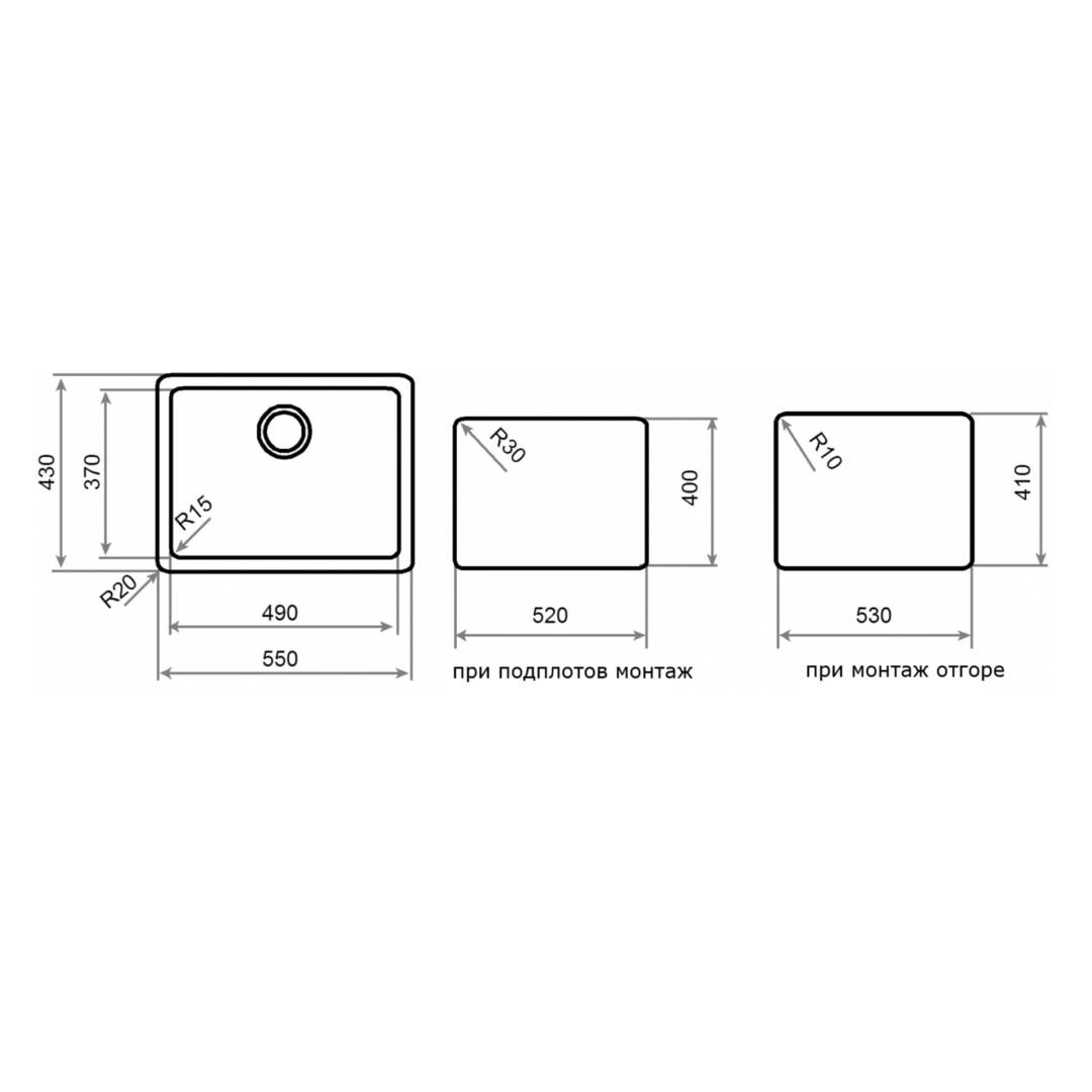 • За монтаж под плот – гранитен,синтетичен или от технически камък