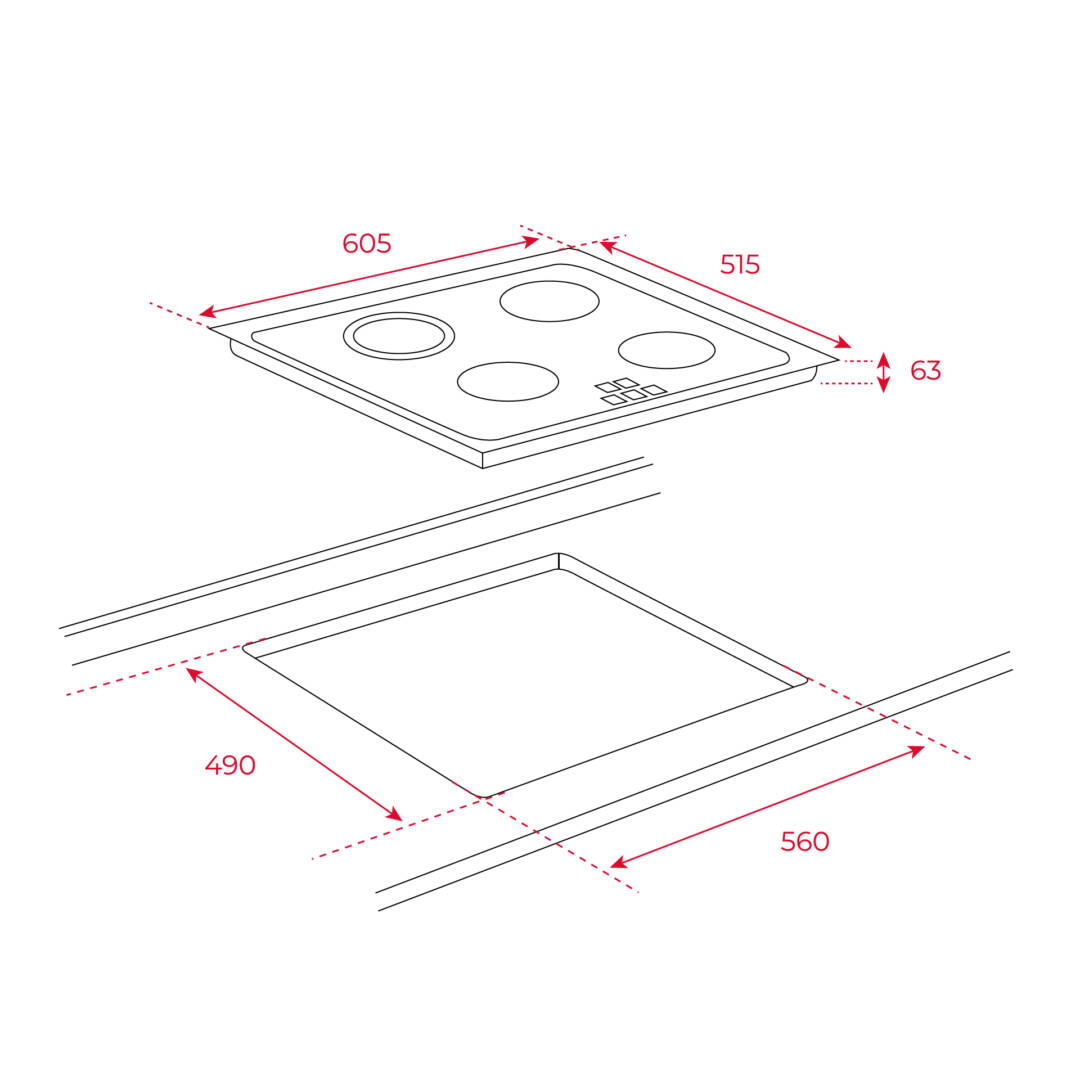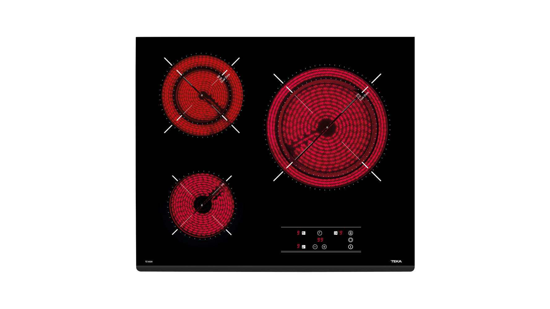 Стъклокерамичен плот с 3 готварски зони, таймер, фасет в предната част