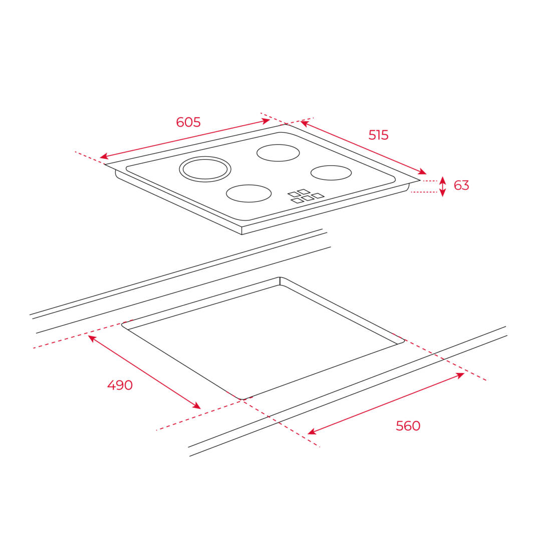 Стъклокерамичен плот с 4 готварски зони, таймер, фасет в предната част