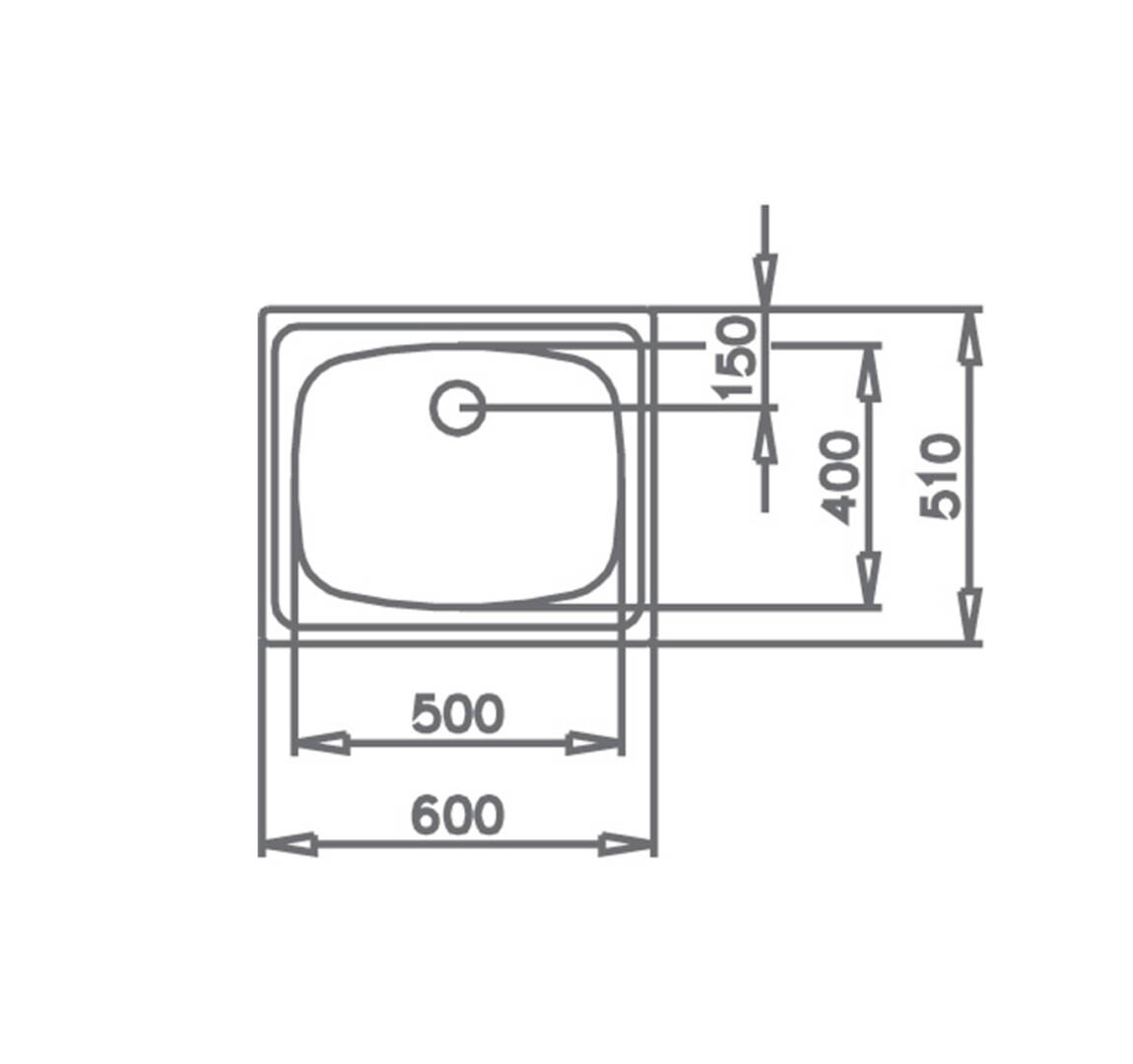 Иноксова мивка за вграждане, гладка, за шкаф със светъл отвор 60 см