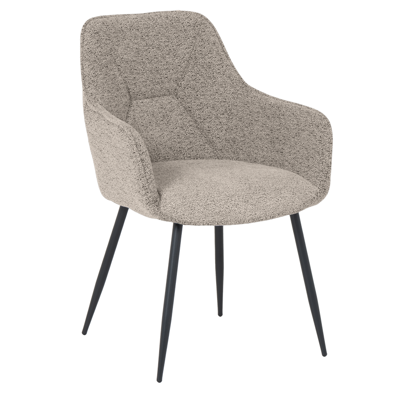 Създайте уют с трапезен стол BARNET. С изчистен и стилен дизайн той ще се впише лесно в различен интериор, а неговата удобна седалка с подлакъници ще осигури комфорт за всеки член от семейството и вашите гости. Моделът е изработен от висококачествена дамаска и стабилни крака от праховобоядисан метал. Пълна информация за размерите и характеристиките на модела ще намерите в таблицата в таб/поле „Техническа информация“.