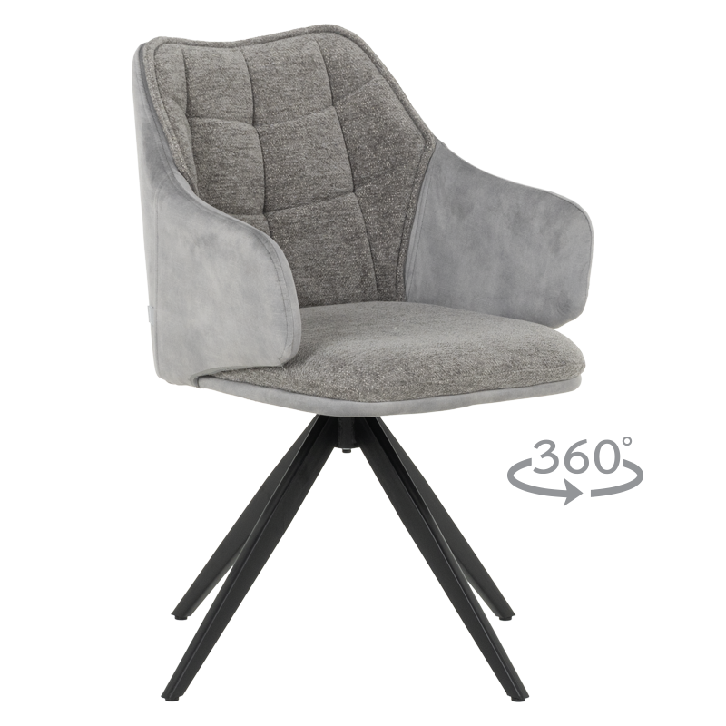 Трапезен стол BORDON притежава елегантна визия и стабилна основа от праховобоядисан метал. За облегалката и седалката е използвана приятна на допир дамаска с високо качество. Моделът има удобни подлакътници, които осигуряват необходимата почивка на ръцете, както и функция за 360° въртене на седалката. Пълна информация за размерите и характеристиките на модела ще намерите в таблицата в таб/поле „Техническа информация“.