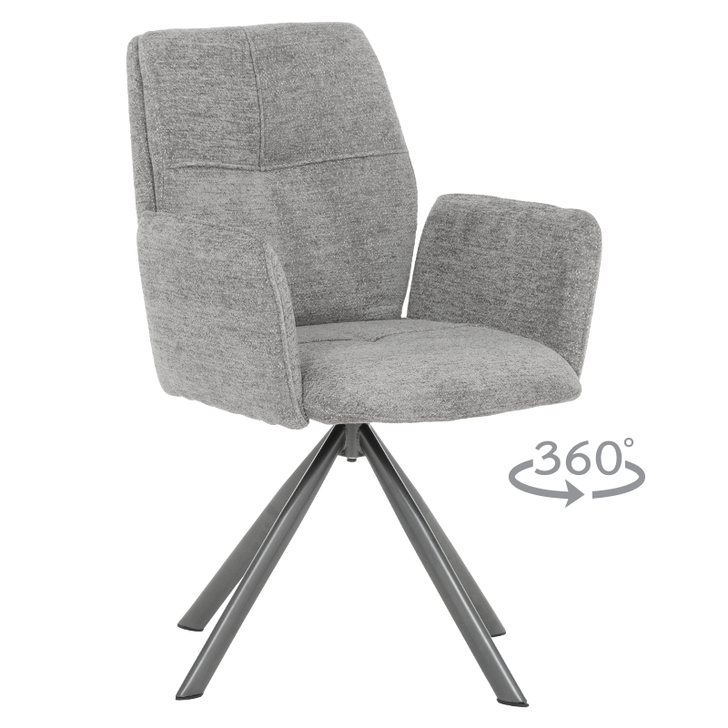 Трапезен стол BURY 2 има съвременна визия и е подходящо решение както за интериора на дома, така и за обзавеждане на различен тип заведения. Моделът разполага с високи подлакътници и широки седалка и облегалка, изработени от първокласна дамаска. Стабилността му е гарантирана от метална праховобоядисана основа. BURY 2 притежава не само страхотна визия, но и иновативна функция за въртене на 360°. Пълна информация за размерите и характеристиките на модела ще намерите в таблицата в таб/поле „Техническа информация“.
