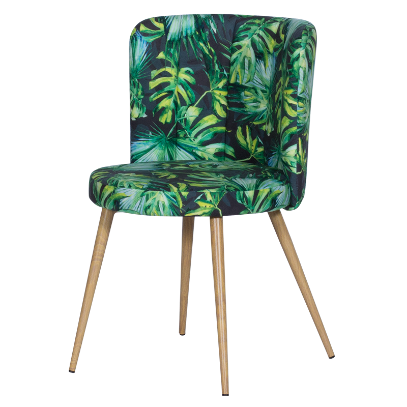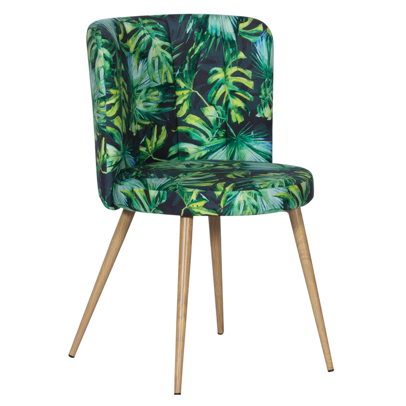 Трапезният стол Carmen 525 е модел с модерен дизайн, който ще внесе стил и екзотика в интериора. Изработен е от висококачествена дамаска с цветни мотиви и метални крака, наподобяващи дърво. Пълна информация за размерите и характеристиките на модела ще намерите в таблицата в таб/поле „Техническа информация“.