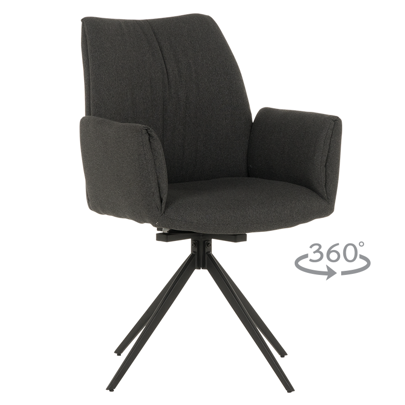 Трапезният стол COMO е удобен модел с подлакътници и практична функция за въртене на 360°. Краката му са изработени от праховобоядисан метал, а за тапицерията му е използвана висококачествена дамаска. Пълна информация за размерите и характеристиките на модела ще намерите в таблицата в таб/поле „Техническа информация“.