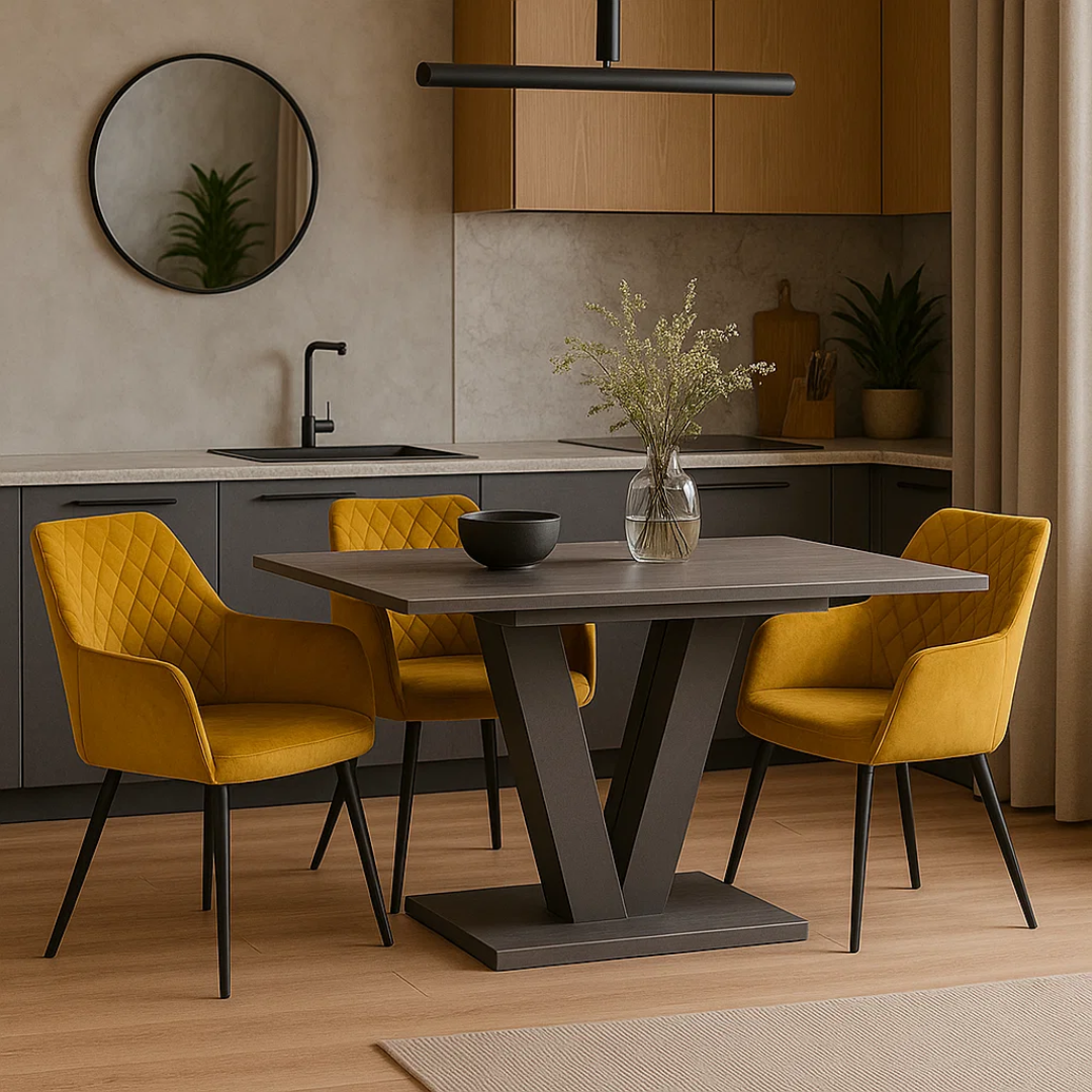 С трапезния стол ETON ще се радвате на стил и удобство. Неговата комфортна седалка е изработена от нежна дамаска, а краката му от праховобоядисан метал. Пълна информация за размерите и характеристиките на модела ще намерите в таблицата в таб/поле „Техническа информация“.
